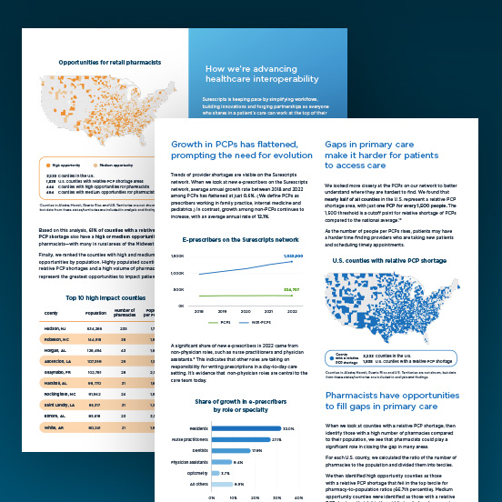 In a recent report, Surescripts shared data and analysis based on population and geography. The result? We effectively measured the gaps in primary care and opportunities for evolving care teams to fill those gaps: